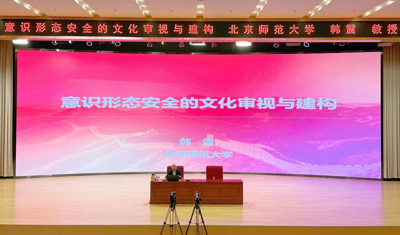 韓震教授圍繞我國意識形態(tài)安全問題,從意識形態(tài)工作的意義與目的、我國意識形態(tài)安全存在的隱憂、改進意識形態(tài)工作的思考、做好意識形態(tài)工作的有利條件等方面進行了深入闡釋。