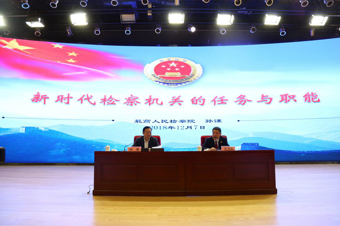 2018年12月7日,國家檢察官學(xué)院大檢察官講堂舉辦第五講。最高人民檢察院黨組成員、副檢察長孫謙以“新時(shí)代檢察機(jī)關(guān)的任務(wù)與職能”為題,結(jié)合修訂后的《人民檢察院組織法》,從現(xiàn)代檢察制度與人民檢察的歷史、檢察機(jī)關(guān)的任務(wù)與職能、檢察機(jī)關(guān)活動(dòng)的基本原則、新時(shí)代法律監(jiān)督的理念等四個(gè)方面,為廣大學(xué)員和全體教職工帶來了理論與實(shí)務(wù)緊密融合的精彩一課。