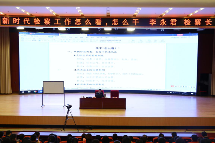 2019年1月4日上午,國家檢察官學院大檢察官講堂舉辦第八講。新疆維吾爾自治區(qū)人民檢察院黨組副書記、檢察長李永君以“新時代檢察工作怎么看、怎么干”為題,結合新疆檢察工作實踐,從新時代檢察工作認識論和方法論兩個維度,為廣大學員帶來了理論與實踐緊密融合一課。