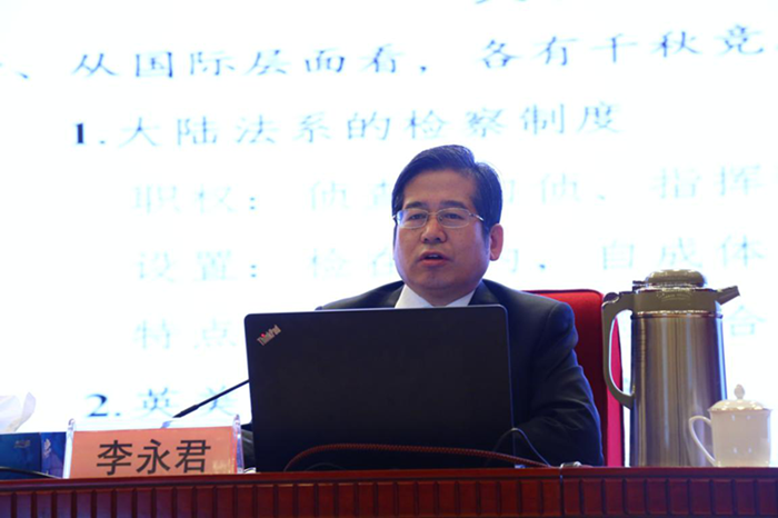 李永君首先從國際、國家和新疆三個層面分析了新時代檢察工作要“怎么看”的認識論問題。從國際層面系統(tǒng)梳理大陸法系、英美法系和前蘇聯(lián)法系檢察制度,從國家層面深入分析人民檢察制度的歷史基因、當代軌跡和新時代起點,并詳細介紹新疆社會形勢和檢察工作情況,令大家對新疆檢察人的堅守和付出肅然起敬。李永君認為,在新時代的歷史坐標下,全國檢察機關都面臨著三大轉變:司法責任制改革帶來辦案模式的改變,監(jiān)察體制改革帶來工作重心的改變,內設機構改革帶來人員配置的改變,這都需要檢察機關在新時代要有新?lián)斝伦鳛椋粩喔滤痉ɡ砟睿绕湟鋵嵏邫z院“講政治、顧大局、謀發(fā)展、重自強”總要求,切實履行好社會責任和專業(yè)責任。面對新形勢新任務和新疆檢察工作實際,新疆檢察人堅持保強補弱、爭先創(chuàng)優(yōu)工作思路,打出“鑄魂、布局、破題、奠基”等一系列組合拳。目前已成效初現(xiàn),“特色”脈絡也已清晰可見。
