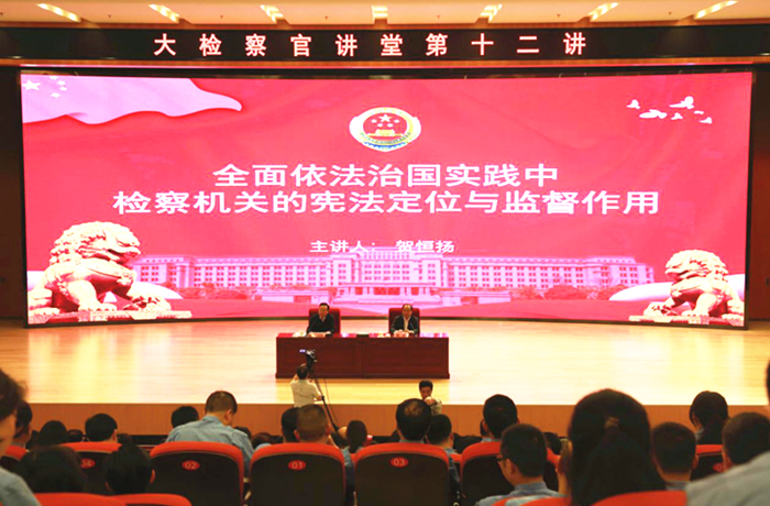 5月7日,學(xué)院舉辦2019學(xué)年大檢察官講堂第三講(總第十二講)。重慶市人民檢察院黨組書記、檢察長、二級(jí)大檢察官賀恒揚(yáng)以“全面依法治國實(shí)踐中檢察機(jī)關(guān)的憲法定位與監(jiān)督作用”為題,為學(xué)員和教職工帶來一場(chǎng)思想深邃、邏輯嚴(yán)謹(jǐn)、理論與實(shí)務(wù)緊密融合的精彩授課。