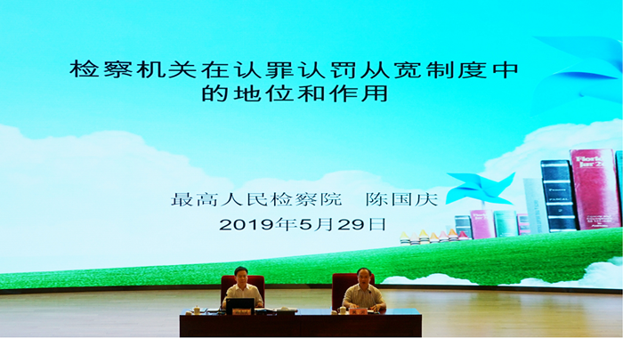5月29日,學(xué)院舉辦2019學(xué)年大檢察官講堂第五講(總第十四講)。最高人民檢察院黨組成員、副檢察長(zhǎng)、二級(jí)大檢察官陳國慶以“檢察機(jī)關(guān)在認(rèn)罪認(rèn)罰從寬制度中的地位和作用”為題,為學(xué)員和學(xué)院教職工帶來一場(chǎng)理論與實(shí)務(wù)緊密融合的精彩授課。