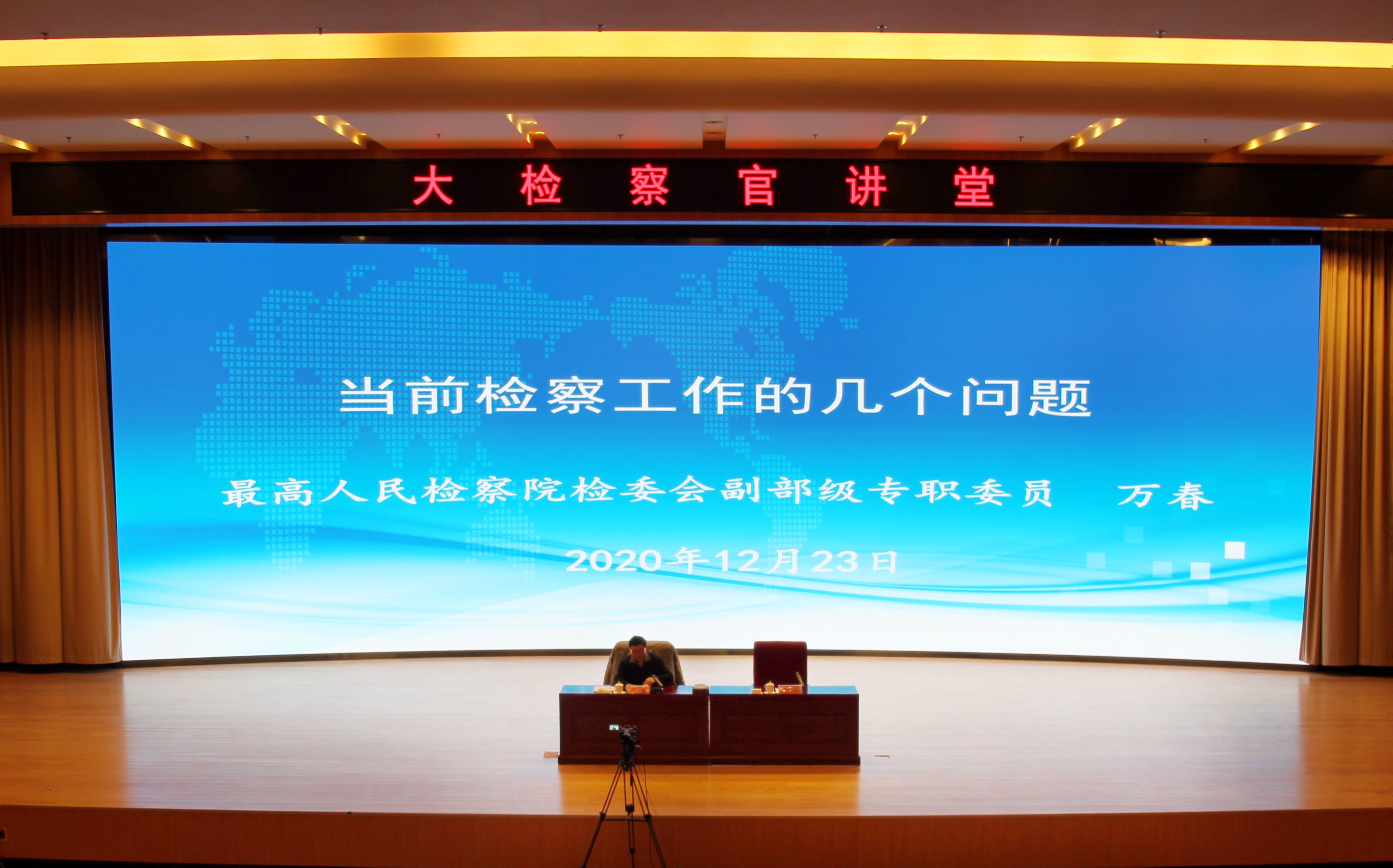12月23日,國家檢察官學院大檢察官講堂舉辦第二十八講。最高人民檢察院檢察委員會副部級專職委員、二級大檢察官萬春圍繞當前檢察工作的幾個問題進行專題講授。
