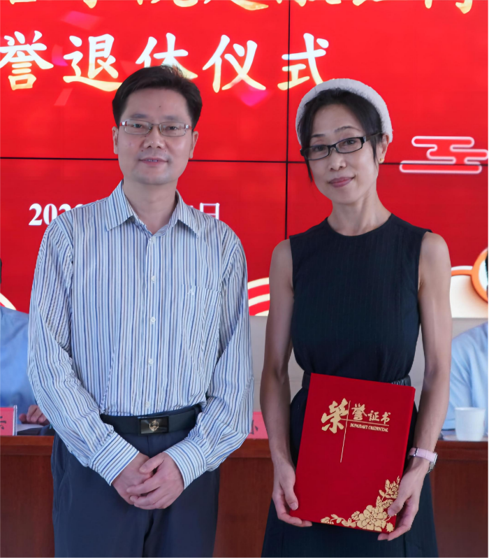 學(xué)院黨委領(lǐng)導(dǎo)對趙淑紅在學(xué)院工作中的付出和貢獻(xiàn)給予了充分肯定,祝福她享受美好幸福的退休生活,希望她一如既往關(guān)心學(xué)院建設(shè),經(jīng)常回學(xué)院看看,做好傳幫帶。孫勤為趙淑紅頒發(fā)了榮譽(yù)退休證書。