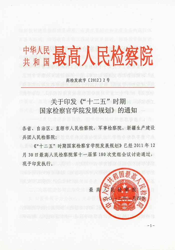“十二五”時(shí)期國家檢察官學(xué)院發(fā)展規(guī)劃