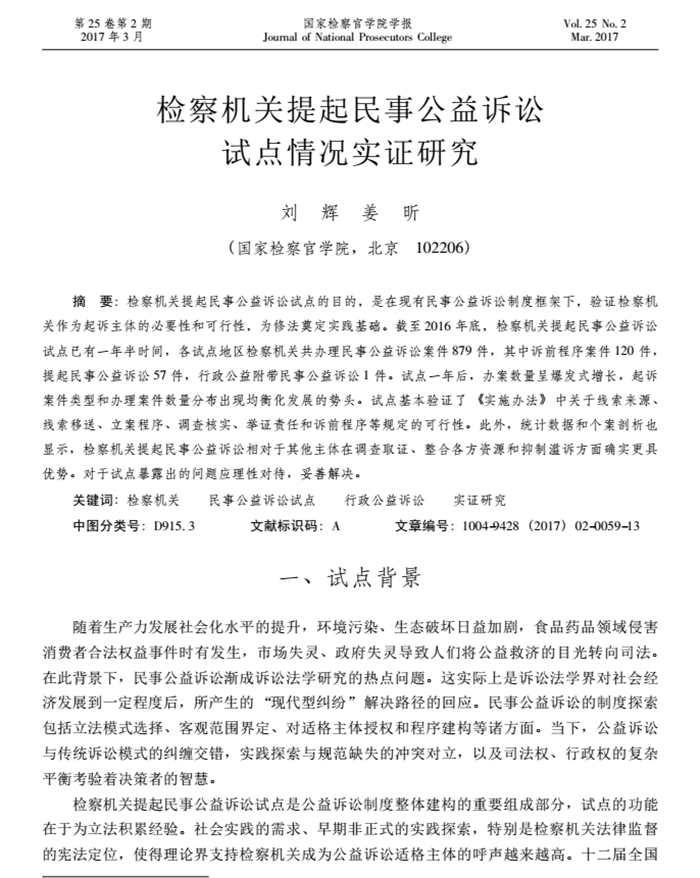 劉輝、姜昕:檢察機關提起民事公益訴訟點情況實證研究