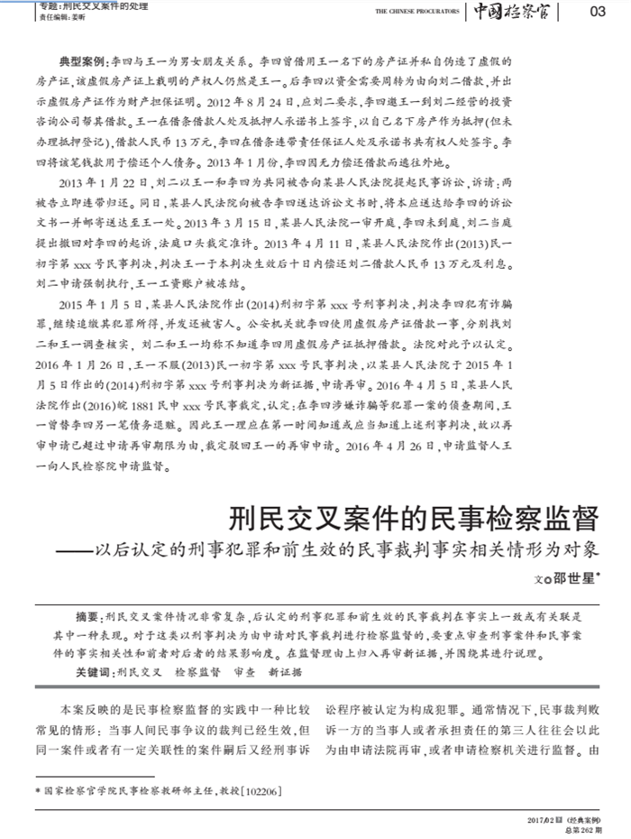 邵世星:刑民交叉案件的民事檢察監(jiān)督