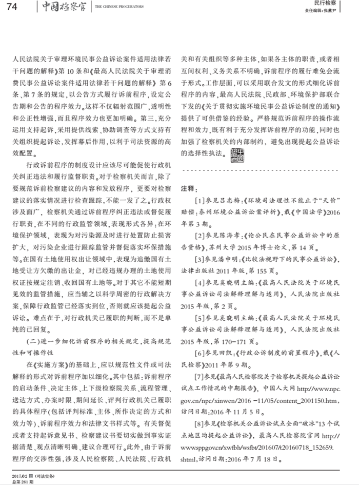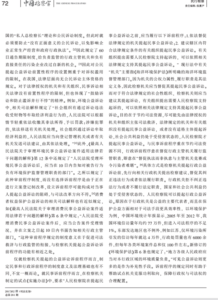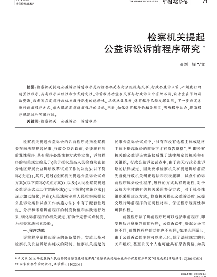 劉輝:檢察機關提起公益訴訟前程序研究