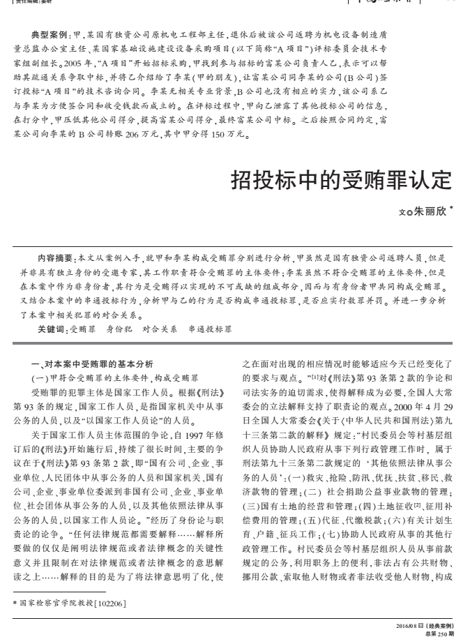 朱麗欣:招投標(biāo)中的受賄罪認(rèn)定