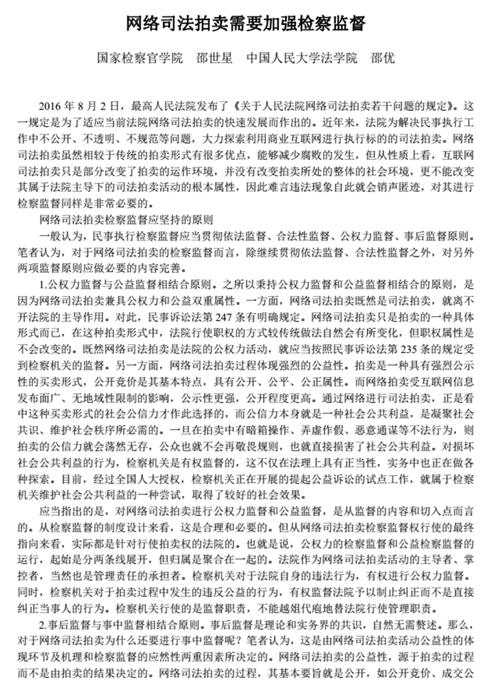 邵世星、邵優(yōu):網(wǎng)絡(luò)司法拍賣需要加強(qiáng)司法檢察監(jiān)督