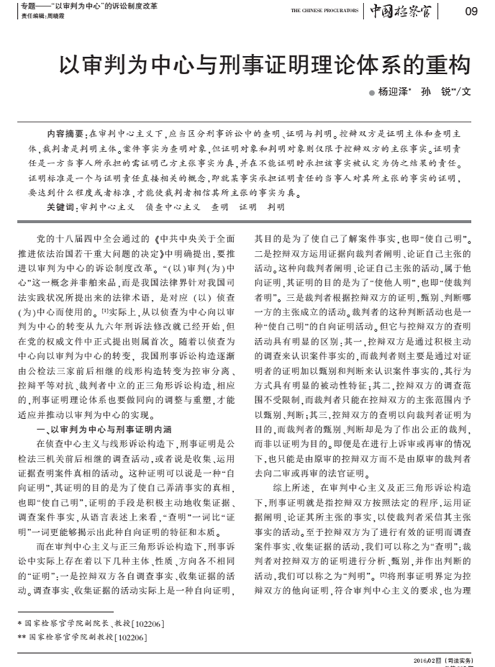 楊迎澤、孫銳:以審判為中心與刑事證明理論體系的重構(gòu)