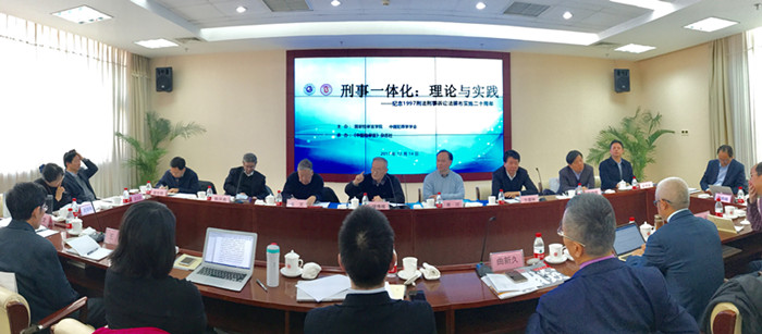 為了紀念1997刑法刑事訴訟法頒布實施二十周年,總結(jié)我國刑法刑事訴訟法實施經(jīng)驗和理論研究成果,促進刑法刑事訴訟法有效實施。2017年12月14日,由學院聯(lián)合中國犯罪學學會主辦、《中國檢察官》雜志社承辦的“刑事一體化:理論與實踐——紀念1997刑法刑事訴訟法頒布實施二十周年”學術(shù)研討會在學院圖書館二樓會議室召開。學院院長、中國犯罪學學會會長黃河主持研討會開幕式并致辭。